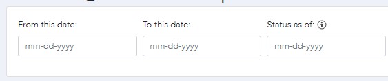 Use the "From this date" and "To this date" filter to select a date range. The "Status as of" can be used to view the status of the same referrals on a specific date. 1. Click on the date box and scroll through to select the desired date for each filter. You can also type the desired date using the mm-dd-yyyy format shown in the box.