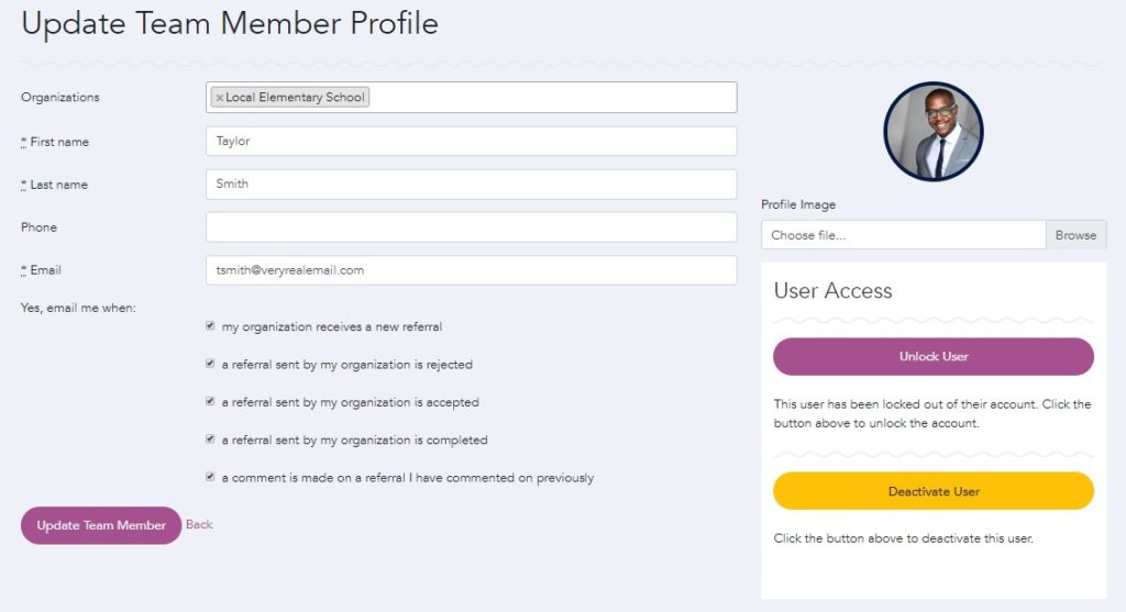 - NOTE: Team members can edit their notification preferences through My Profile.