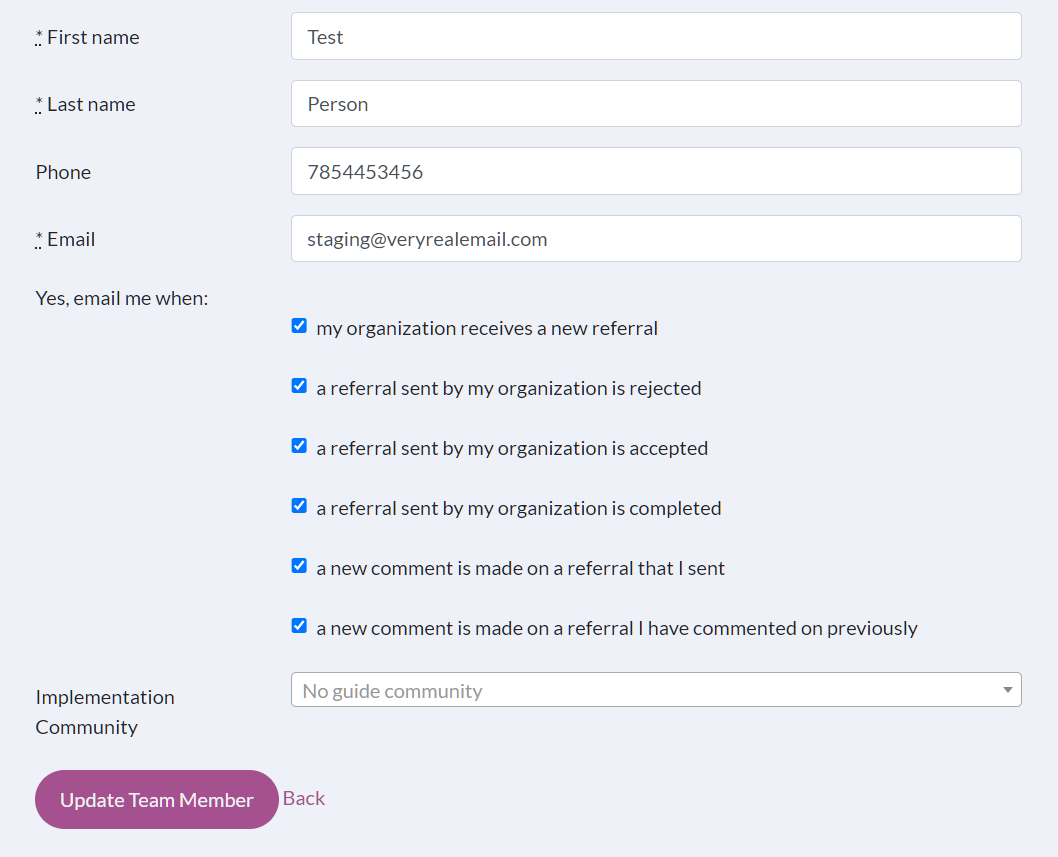 Note: At least one person from each organization needs to opt in to receive notifications when a new referral is received.