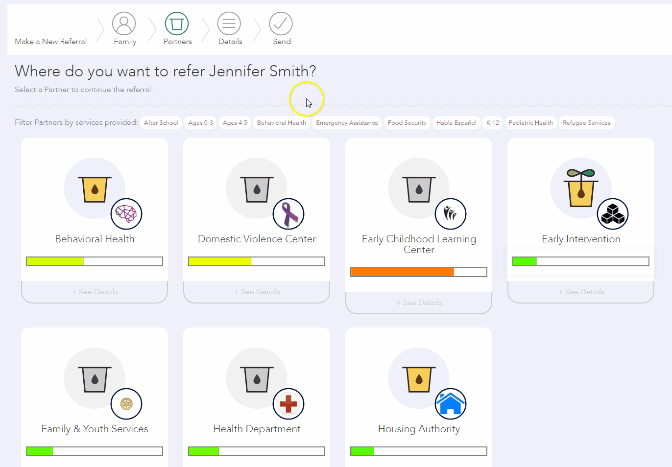 The status will instantly update to let partners know your organization's capacity when they are selecting a referral partner.